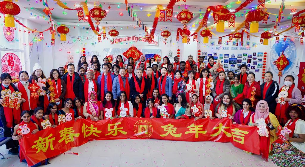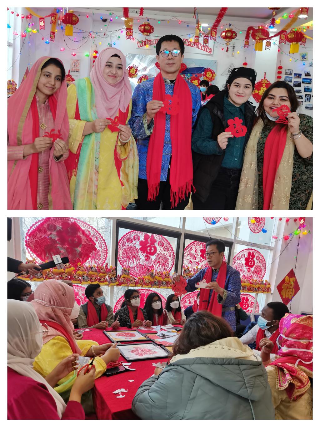 (国际交流合作中心)副院长郭艳秋及部分学院教师参加了此次活动。来自伊朗、巴基斯坦、斯里兰卡、坦桑尼亚、津巴布韦等国家的40余名留学生在活动中体验中国新春民俗,感受中国传统佳节的魅力。