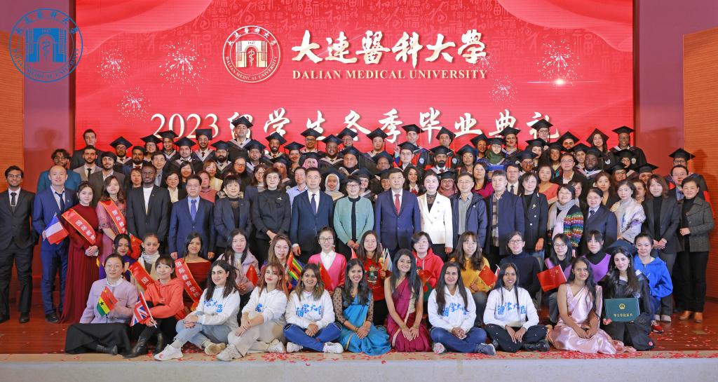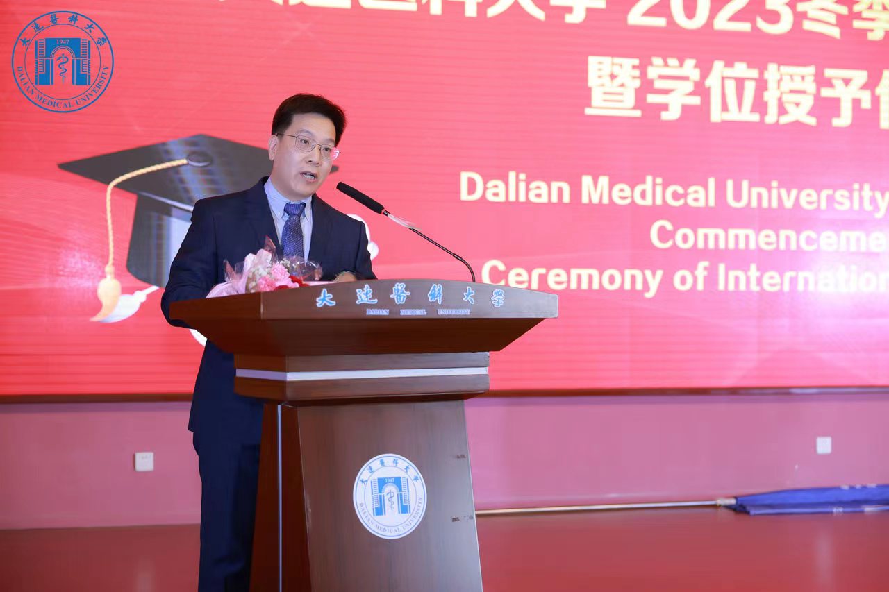 对来自21个国家的67名国际学生顺利完成学业表示热烈祝贺并表达了殷切期望:“明仁、济世”,践行医者仁心的光荣使命;“甚解、敏行”,提升妙手丹心的精湛技艺;“开放、交流”,推动构建人类命运共同体。随后,卢苇宣读《2023届冬季国际学生学位授予决定》,校长赵杰分别为博士研究生、硕士研究生、本科毕业生拨穗并颁发毕业证书。