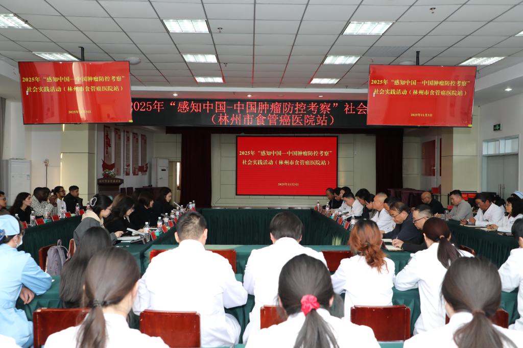 林州市食管癌医院副院长焦广根以昔日林州“水不通、路不通、食管不通”的困境为切入点,深情回顾了北京医疗队的感人事迹。20世纪60年代,医疗队成员在住宿简陋、物资匮乏的条件下,走遍林县山村开展流行病学调查与免费筛查,凭借算盘和简易实验装置完成数据统计,逐步建立起以“早发现、早诊断、早治疗”为核心的“三早”防控模式。他们不仅留下了丰硕的防治成果,更培养了一支“永不走的医疗团队”。“牢记使命,不畏艰难,勇于探索,甘于奉献”的北京医疗队精神深深打动了在场师生。在“北京医疗队精神”文化园,留学生们驻足细读26位专家的事迹介绍,并在纪念碑前合影留念。此外,留学生们还实地参观了胸外科病区,与医生深入交流食管癌手术方式及术后护理等内容,实现了理论与实践的有机结合。