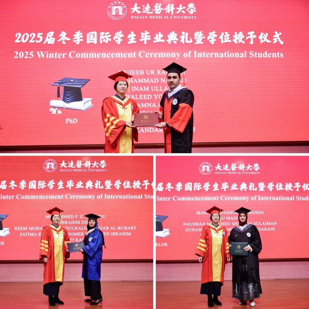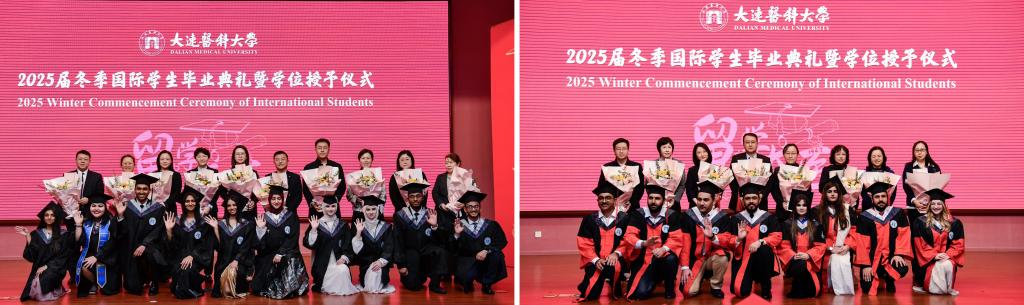 李晓东宣读《2025届冬季国际学生学位授予决定》,刘莹依次为博士、硕士和本科毕业生拨穗并颁发毕业证书和学位证书。沉甸甸的证书不仅是学识的证明,更是从医学生到健康守护者的身份加冕和生命的重托。师生和亲友们以持续而热烈的掌声,向即将启程的毕业生致以最诚挚的祝福。