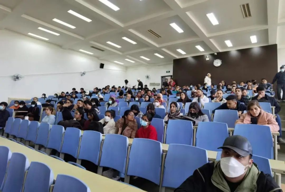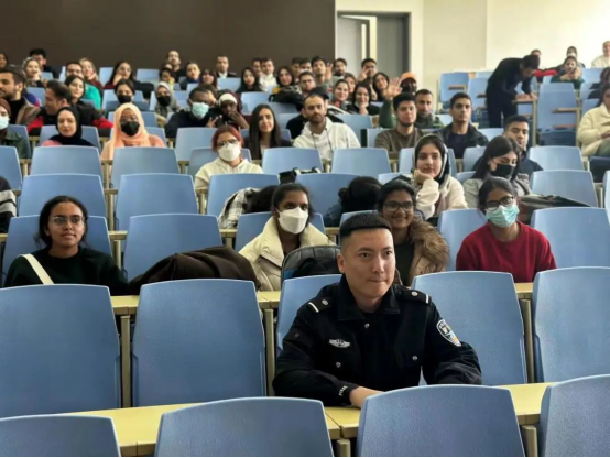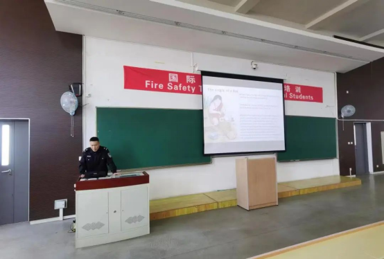 保卫处冯开元老师对2020-2022级的留学生进行消防安全教育。